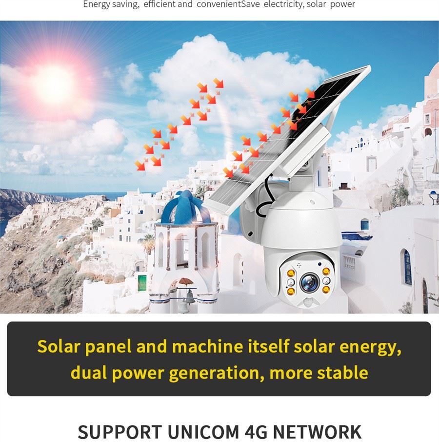 4. Pan Tilt Broader View fjarstýring---sólar Ptz myndavél veitir 360 gráðu lárétt og 120 gráðu lóðrétt snúnings sjónarhorn. Það styður fjarstýringu stefnu á símanum þínum. Með eiginleikum 3x stafræns aðdráttar og fjöl-deilingar notenda, sem veitir sveigjanlegri og víðtækari sýn fyrir þig og fjölskyldur til að fylgjast með húsinu þínu í allri-sýn í rauntíma. Að velja sólarorkuútimyndavél verndar heimili þitt 24/7.